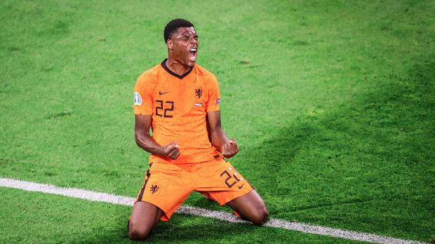 Denzel dumfries beats jadon sancho to a header in the nations league semiscredit: